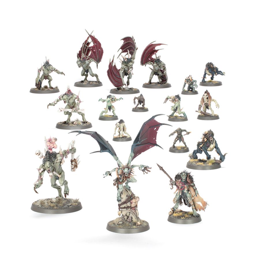 If you desire to protect the domains of your liege lord, this box is an ideal way to start a new Flesh-eater Courts collection – or expand an existing army – and save money compared to buying the kits individually. Led by a savage Abhorrant Gorewarden, and protected by elite Crypt Flayers, they are a force to be reckoned with. Crypt Horrors surge forward to take on tough units, while the Royal Beastflayers control the battlefield and take objectives. These miniatures comprise a complete Spearhead force, meaning you're ready to jump into tight, tactical games and protect your lands right out of the box.